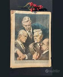 Copertina illustrata (retro): I grandi a Ginevra.Per la prima volta dopo il convegno di Potsdam del 1945, si riunirono i leader di Stati Uniti, URSS, Gran Bretagna e Francia: Eisenhower, Bulganin, Eden e Faure. Discuteranno di disarmo, questioni atomiche, sicurezza europea e Germania, senza prendere decisioni concrete, ma concordando un piano di lavori da sviluppare dai ministri degli Esteri.(Disegno W. Molino)