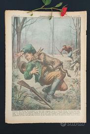 Copertina illustrata (retro): Il cacciatore cacciato: Nelle campagne di Codevilla (Pavia), un cacciatore spara a una lepre convinto di averla uccisa. Quando si avvicina, l’animale ferito lo assale mordendolo e graffiandolo. Solo l'intervento di un altro cacciatore mette fine alla singolare lotta. (Disegno W. Molino)