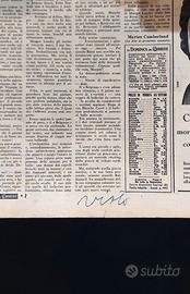 La Domenica del Corriere 30 settembre 1956 Anno 58, Numero 40 Corriere della Sera , Milano, 1956 Rivista originale e completa, in lingua italiana. Copertina morbida. Copertina illustrata (fronte) Primo volo a Mastic (New York): due ragazzi, Eddie Gates (13) e Roy Brosseau (11), rubano un monoplano incustodito, decollano e sorvolano la contea di Suffolk per un’ora. Atterrano sulla stessa pista. Eddie pilota, guidato da Roy, che aveva studiato da un manuale di volo.(Disegno W. Molino) Copertina illustrata (retro): Guerra ai pipistrelli a Brigstock (Inghilterra): il pastore del villaggio, trasportato in moto da un amico, correva su e giù per la chiesa agitando un cencio, per scacciare i pipistrelli che l’avevano invasa. Il rumore del motore si è rivelato un metodo efficace.(Disegno W. Molino) Condizioni: Ottime, con pagine un po’ ingiallite dal tempo. Le pagine potrebbero presentare piccoli strappi e macchie dovute all'uso e alla conservazione nel tempo. Sono presenti alcune annotazioni a penna, che tuttavia non compromettono la lettura (foto). Piccolo strappo nella prima pagina (foto) In questo numero: Anita Ekberg Hans Carossa Abbiamo finalmente trovato il successore di Fausto Coppi? Ercole Baldini corridore prodigio Hanno creato l'industria americana: Henry Ford, Vanderbilt, Rockefeller, Morgan etc.. Visitare gli infermi: un racconto di Gina Lollobrigida ed altro ancora! I fiori visibili in foto sono decorativi e non inclusi nella vendita. Prima di procedere con l'acquisto, vi chiedo gentilmente di inviarmi un messaggio. Potrei essere in ferie e non riuscire a rispettare i tempi di spedizione. Nel mio profilo trovate molte altre riviste storiche disponibili. Per ulteriori informazioni contattateci. Domenica del Corriere, rivista storica originale con copertine illustrate da Molino, De Gasperi e Beltrame. Supplemento settimanale del Corriere della Sera, con pagine vintage di cronaca, arte e cultura. Perfetta per collezionisti e amanti del vintage.