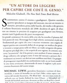 Scommettere contro il sistema e guadagnarci. È quello che ha fatto un piccolo gruppo di speculatori visionari dopo aver intuito cosa stava succedendo sul mercato, ben prima dello scoppio della crisi mondiale nel 2008. Ne hanno approfittato, facendo a volte precipitare gli eventi e uscendone vincenti. "La grande scommessa" è la storia della crisi dal loro punto di vista. Personaggi fuori dagli schemi, "eroi" dai caratteri difficili, sconosciuti ai più ma fondamentali per capire che cosa è successo veramente. Una coppia di ragazzi partita con 100 mila dollari da un garage; un medico che gioca a investire a tempo perso nelle (pochissime) ore libere e divulga consigli finanziari in un forum; il trader arrogante che pensava di saperne una più degli altri, e che scoprirà di aver ragione. In comune, una certa "eccentricità" che li ha portati a non ascoltare il senso comune, la droga collettiva che spingeva tutto il resto del mercato a pensare che i rendimenti sui mutui e sui derivati non sarebbero mai finiti.