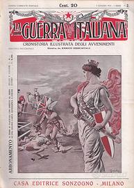 La Guerra Italiana Cronistoria Illustrata degli Avvenimenti Volume primo Enrico Mercatali e Guido Vincenzoni Casa Editrice Sozogno - Milano 1915 contiene 25 periodici settimanali dal 29 maggio al 14 novembre 1915 400 pag. / cartonato dimensioni 22,5 x 30 x 3