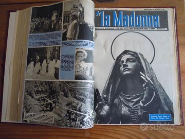 La Madonna. Periodico Ufficiale per gli Atti del Comitato per l'Anno Mariano pubblicazione quindicinale del 1954, fondamentale per documentare le iniziative del primo Anno Mariano indetto da Papa Pio XII Annata completa rilegata. Presenza di 5, 6 piccoli strappi in fondo alla pagina dovuto ad un incauto sogliamento della rivista, rifinitura del rilegatore che in alcuni casi - non in tutti - ha sbordato nella rifilatura, ma nel complesso buon esemplare completamente fruibile nella lettura. Visibile senza impegno zona centro storico Brescia. Preferibile il ritiro a mano. A richiesta si spedisce con poste italiane piego di libri raccomandato tracciato in busta imbottita 6 euro in più. Se l'annuncio è attivo il prodotto è disponibile. Modalità di pagamento da concordare preventivamente