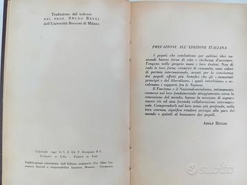 Hitler Adolf, La mia vita. Prefazione di Adolf Hitler per l'edizione italiana. Sesta ed. Bompiani 1940-XVIII collezione Libri scelti panorama del nostro tempo. In-8°, legatura non coeva con titoli incisi al dorso, pp. 400 con ritratto di Hitler in antiporta, buone condizioni