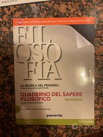 Libri con copertina trasparente con pochissimi appunti in matita. Presente anche il fascicolo “il quaderno del sapere filosofico- il pensiero antico e medievale”.