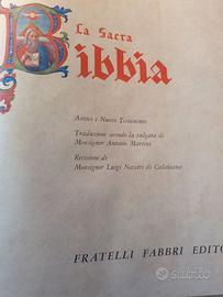La Sacra Bibbia, Fratelli Fabbri Editori, 1963, 7 volumi (cm 31x26 ognuno) rilegati in similpelle con decorazioni in oro al piatto e titoli al dorso. Testo arricchito da centinaia e centinaia di illustrazioni a colori. Carta patinata. Traduzione secondo la vulgata di mons. Antonio Martini con la revisione di mons. Luigi Nazari di Calabiana. Libro I (Il Pentateuco, pagg. 400), Libro II (Libri Storici, pagg. 336), Libro III (Libri Storici, pagg. 320), Libro IV (Libri Sapienziali, pagg. 404), Libro V (Libri Profetici, pagg.404), Libro VI (Il Vangelo e gli Atti degli Apostoli, pagg. 380). Libro VII (Le lettere degli Apostoli e l'Apocalisse). Tot. pagg. 2640. Perfette condizioni, davvero come nuovo. Peso di ogni libro (ai fini dell'eventuale spedizione) circa 3 kg. Prezzo 110 euro compresa la spedizione (90+20).