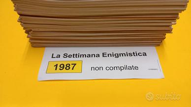 LA SETTIMANA ENIGMISTICA, anno 1987, NON compilati, composta di 46 fascicoli/riviste; numeri disponibili in ordine progressivo crescente : Anno 1987: 2858, 2859, 2860, 2861, 2862, 2863, 2864, 2865, 2866, 2867, 2868, 2869, 2870, 2871, 2872, 2873, 2874, 2875, 2876, 2877, 2878, 2879, 2880, 2881, 2882, 2883, 2884, 2885, 2886, 2887, 2888, 2889, 2890, 2891, 2892, 2893, -, 2895, 2896, 2897, -, 2899, 2900, -, 2903, 2904, -, 2906, 2907, -, 2909; (disponibilitā verificata) Euro 92 (eventuali numeri mancanti dell'annata, su richiesta, posso essere integrati con riviste parzialmente compilate) - Vendita anche di singole riviste o piccole quantitā. - Possibile acquisto di pių annate incorporate in unica spedizione. - Disponibili riviste/fascicoli/numeri dallanno 1960 in poi NON COMPILATI (tutti i giochi sono intonsi), PARZIALMENTE COMPILATI (anche un solo gioco iniziato) e in VERSIONE DIGITALE dal 1932. - Disponibili la lista completa dei PERSONAGGI IN COPERTINA e delle CITTA' nel cruciverba Una gita a ... - [se1987] -