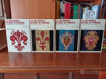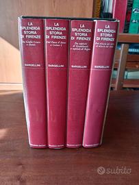 La splendida storia di Firenze di Piero Bargellini, edita da Vallecchi, in elegante cofanetto rigido contenente quattro volumi rilegati con copertina rigida e sovraccoperta. Anno 1970.