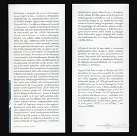 Aldo Agosti, Lucia Ceci, Enzo Collotti, Giovanni De Luna, Angelo d'Orsi, Mimmo Franzinelli, Mario Isnenghi, Nicola Labanca, Giorgio Rochat, Nicola Tranfaglia: "LA STORIA NEGATA - Il revisionismo e il suo uso politico" Introduzione e cura di Angelo Del Boca Neri Pozza Editore, 2009 — collana "Bloom" — Fuori catalogo 384 pagine in-8° — Brossura con copertina illustrata con bandelle ---- ▶️ CONDIZIONI: Volume nuovo (mai letto né sfogliato) con piccola macchia di colore alla copertina (v. foto). ---- «Contro il rischio di una totale e interessata falsificazione della storia, ci siamo soltanto permessi di indicare, senza alcuna pretesa di essere i depositari della verità assoluta, e tanto meno di costituire un manifesto di intenti, la nebulosa di contraffazioni che ci opprime, ci soffoca, ci avvilisce.» — Angelo Del Boca Sottoporre a revisione la storia è il compito stesso degli studiosi, essendo la storiografia nient'altro che una costante riscrittura della storia. Perché, dunque, degli storici come gli autori di questo libro dovrebbero schierarsi contro il «revisionismo»? Perché sotto questo termine si è delineato, nel corso degli ultimi decenni in Italia e nel mondo, un «uso politico della storia» che ha poco a che fare con la ricerca storiografica. Un «uso politico» dalle molteplici diramazioni, ma che, soprattutto nella distorta ricostruzione della nostra storia nazionale, presenta alcune opinioni ossessivamente ripetute: l'idea che il Risorgimento sia stato una guerra di annessione e non un movimento di rinascita per l'unità nazionale; la concezione del fascismo come tentativo autoritario bonario, distinto dal totalitarismo nazista e volto all'edificazione di una patria che non sarebbe esistita prima; l'ipotesi della morte definitiva della patria sancita dall'8 Settembre e la conseguente rivalutazione dei combattenti di Salò come autentici patrioti; la Resistenza trattata come […] ---- Vedere INDICE in foto.