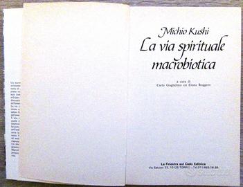 La via spirituale macrobiotica di Michio Kushi a cura di Carlo Guglielmo ed Elena Roggero traduzione di Sergio Cipollari e Carlo Guglielmo La Finestra sul Cielo Editrice finito di stampare nel mese di novembre 1987 Libro in perfette condizioni copertina morbida con bandelle, formato cm 14 x 21, pp. 159 gradito anche il pagamento diretto con bonifico o paypal costo eventuale spedizione con Raccomandata Piego di Libri tracciabile 5 € (consegna in 4-6 giorni lavorativi, sabato e festivi esclusi) Per qualsiasi informazione contattatemi
