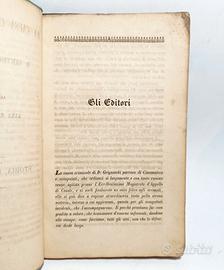 In 8° (21x14 cm), pp. 124, (3), brossura azzurra (brossura originale verdina ritagliata e applicata alla copertina), titolo in nero all’interno di cornice arrotondata su fondo verdino.