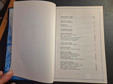 1987 Come nuovo Si distingue per la sua pregiata copertina rigida in simil-velluto blu con il titolo e le decorazioni lineari impresse in oro. Raccoglie una selezione dei componimenti più significativi dei grandi maestri della nostra letteratura, spaziando dai classici delle origini fino ad autori più moderni.