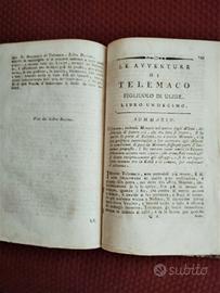 Le avventure di Telemaco figliuolo di Ulisse di Francesco Salignac, stampato in Napoli 1805 presso Michele Migliaccio pag. 307 di cui inizio sulla poesia epica n. 12 .Copertina rigida dorso in pelle. misure 20x13,5x2. La pagina frontespizio con incisione nella parte inferiore risulta leggermente mancante circa mezzo cm. Cedo solo per residenti Roma e provincia consegna a mano