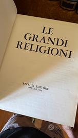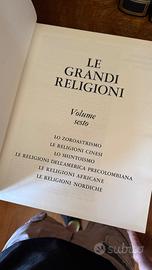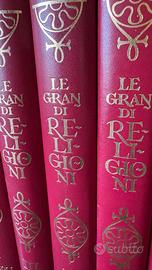 Opera in sei volumi diretta da Angelo Solmi. Introduzione di Carlo Bo. Testi di Riccardo Bacchelli, Luigi Barbesi, Piero Bigongiari, Carlo Bo, Luigi Canesi, Luigi Confalonieri, Boris De Rachewiltz, Par Lagekvist, Cesare Marchi, Indro Montanelli, Ugo Enrico Paoli, Italo Sordi, Alfredo Vig, Anna Luisa Zazo, Mauro Calamandrei, Salvatore Garofalo, Franz Kaiser, Fortunato Pasqualino, Carlo Procaccia, Gian Battista Roggia, Piero Rossano, Eugenia Scarpellini, Sergio Sierra, Henri Daniel-Rops, Giuseppe Gozzini, Armando Guidetti, Thomas O'Dea, Ernesto Pisoni, Emilio Radius, Lucia Sebastiani, David M. Turoldo, Michele Barbi, Piero Bargellini, Lapo Berti, Luigi Cavicchioli, Paolo Liggeri, Franco Melotti, Carlo Perogalli, Amos Segala, Angelo Solmi, Francesco Traniello, Alessandro Bausani, Francesco Gabrieli, Pio Filippani-Ronconi, Giuseppina Scalabrino-Borsani, Virginia Vacca, George Woodcock, Paolo Beonio-Brocchieri, Maria Grazia Biovi, Fernando Gamboa, Franco Melotti, Luigi Moraldi, Romain Rainero, Gianni Roghi, Marco Scovazzi, Paola Sordi, Luigi Volpe Rinonapoli, Alan W. Watts Le religioni Egiziana, Greco-Romana, Misteriche - La religione degli Assiro.Babilonesi e l'Ebraismo - Il Cristianesimo - La storia della Chiesa - L'Islam e le relgioni indiane - Le religioni della Cina, Lo Zoroastrismo, Lo Shintoismo, Le religioni nordiche, Le religioni precolombiane e africane, Indici. Volumi grande formato con rilegatura in mezza pelle e tela. Corredato da centinaia di foto a piena pagina e nel testo. Volumi in perfette condizioni salvo parte in tela copertine di un paio di volumi con leggerissime macchie polvere. Pag. 3792. 26,5 X 32 cm altezza. Copertina rigida illustrata.