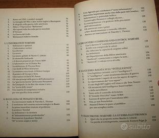 Umberto Rapetto, Roberto Di Nunzio Le nuove guerre. Dalla Cyberwar ai Black Bloc, dal sabotaggio mediatico a Bin Laden Milano, Rizzoli, 2001 Opera all'epoca aggiornatissima (tratta anche dell'attentato dell'11 settembre) e tuttora interessante. Si parla di: Information Age; Geopolitica e psicogeografia; Storia dell'informazione a scopo bellico; Information warfare; Command-and-Control warfare; guerra basata sull'Intelligence; Electronic warfare; Il cervello nel mirino; Hacker warfare e cyberwarfare; Manipolazione ambientale; Guerra climatica; Combattimento in ambito urbano; Chemical & Biological warfare; Terrorismo, cyberterrorismo e nuove guerre sante; 11 settembre 2001 (indice completo nelle foto). Con 90 pagine finali fitte di riferimenti bibliografici. Vol. in 8° (22,5 cm) di pagg. 490, (8), brossura editoriale illustrata. Conservazione non ottima ma più che accettabile, con lievissimo arricciamento dei bordi della brossura, arrossamenti e fioriture ai tagli, carte un po' brunite ma sostanzialmente pulite, con arrossamenti appena sensibili su pochissime pagine; privo di sottolineature o annotazioni. Interessante e non facilmente reperibile. LB0396 Spedisco come piego di libri raccomandato; per eltre soluzioni contattatemi