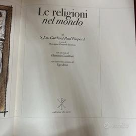 LE RELIGIONI NEL MONDO ed. FMR nuovo da collezione. Il volume Le religioni del mondo di S. Em. Il Cardinal Paul Poupard è opera della collezione Ars sacra. La tiratura di questa edizione esclusiva di 396 pagine nel formato chiuso di 32,5 x 45 cm è limitata a duemilacinquanta esemplari così giustificati: milleottocentosettantacinque numerati in cifre arabe da 1 / 1875 a 1875 / 1875 e centosettentacinque numerati in cifre romane da I / CLXXV a CLXXV / CLXXV. I testi sono stati composti in caratteri bodoniani tondi e corsivi. La carta velata in puro cotone da 170 grammi, appositamente creata per questa tiratura e impreziosita dalla filigrana con il logo della collezione Ars sacra realizzata manualmente su telaio, è stata fabbricata alla forma tonda con particolare formula esclusiva studiata per l'editoria d'arte dalle Cartiere Magnani in Pescia. La stampa delle immagini è stata impressa su carta patinata opaca da 170 grammi. La legatura in pelle naturale Veau Aniline tinta alla botte è stata realizzata manualmente presso la legatoria L'Arte del Libro in Todi. Sulla copertina del volume è presente un'incisione su lastra raffigurate l'opera Ricerca della Verità. Studio 5 di Ugo Riva, realizzata secondo procedimento manuale presso la fonderia di Giuseppe Belotti in Erbusco.