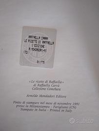 Libro di Raffaella Carrà, Le ricette di Raffaella, pubblicato nel 1991 da Mondadori.