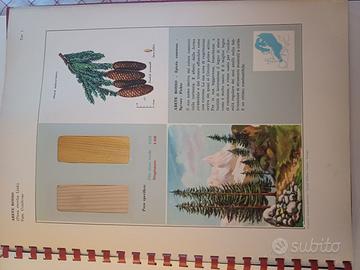 20 tavole illustrate a colori. Le tavole sono stampate solo da un lato di ogni foglio,con testi ed illustrazioni a colori e campioni lamellari rettangolari di vero legno inseriti in finestre fustellate (due per ogni tavola:una allo stato verde,ed una allo stato stagionato) estraibili da taschino sul retro delle tavole.