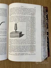 Vendo prestigiosa opera storica "Lehrbuch der Physik und Meteorologie" (Trattato di Fisica e Meteorologia) del celebre Dr. Joh. Müller. Si tratta della settima edizione (Siebente Auflage), ampiamente riveduta e accresciuta, pubblicata nel 1868 a Braunschweig (Germania) dall'editore Friedrich Vieweg und Sohn. Punti di forza collezionistici: Opera Completa: Entrambi i volumi originali (Erster Band & Zweiter Band) sono presenti. Bellissima Rilegatura d'Epoca: I volumi presentano una pregiata mezza legatura in pelle bionda (pelle chiara) sui dorsi, con ricchi fregi in oro e titoli dorati. I piatti sono rivestiti in carta marmorizzata coeva. La rilegatura è solida e presenta solo i normali e affascinanti segni del tempo. Rilevanza Scientifica: È uno dei testi fondamentali del XIX secolo per lo studio della fisica applicata e della meteorologia. Corredo Iconografico Eccezionale: Come riportato nel frontespizio (vedi foto), l'opera contiene: Quasi 2000 incisioni xilografiche (incisioni su legno) intercalate nel testo. 15 tavole fuori testo (alcune a colori/cromolitografie). Una fotografia originale dell'epoca. Condizioni: Interni: Le pagine sono molto ben conservate, pulite e con il corredo iconografico intatto (LIEVI fioriture/marcature del tempo, ma assolutamente nella norma per un libro di 158 anni). Provenienza: Sono presenti ex-libris/firme di appartenenza storiche a matita (es. "Andreis", "Innsbruck 14.1.884", "Lughi Andrea") che aggiungono fascino storico alla copia. Un pezzo da collezione ideale per antiquari, studi professionali e collezionisti di strumenti scientifici e libri d'epoca. Disponibile per consegna a mano a Torino o spedizione sicura, assicurata e accuratamente imballata con TuttoSubito.