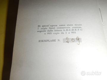 Rara edizione del Bestiario, Favole, Facezie di Leonardo da Vinci, pubblicata dall'editore Toninelli di Milano nel 1945. Questa specifica edizione si distingue per i seguenti dettagli: Curatori: Presenta una prefazione di Giorgio Nicodemi e disegni dell'artista Fabrizio Clerici. Formato: È un volume di piccolo formato (in sedicesimo), stampato in tiratura limitata e numerata (opera tirate in 7 copie fuori commercio contrassegnate con letter A,B,C,D,E ,F G, e 993 copie da 1 a 933). Contenuto: Raccoglie scritti letterari di Leonardo che spaziano tra descrizioni allegoriche di animali, brevi favole morali e motti di spirito ("facezie"). Cos'è il Bestiario di Leonardo? Il Bestiario di Leonardo da Vinci, contenuto principalmente nel Codice H, è una raccolta di descrizioni di animali reali e fantastici. A differenza dei suoi studi scientifici, qui Leonardo segue la tradizione medievale, attribuendo a ogni creatura virtù o vizi umani a scopo morale: Simbologia: Ad esempio, l'elefante rappresenta la temperanza e la prudenza, mentre altri animali possono simboleggiare l'invidia o la gratitudine. Fonti: Leonardo attinse da testi classici come l' Historia Naturalis di Plinio il Vecchio e dai bestiari popolari del suo tempo. Esemplare n. 209. 10 Illustrazioni in bianco e nero di F. Clerici. Volume Unico Dimensioni . 8.9x6.7 cm., 105 pagine., con 10 disegni di Clerici in b/n , legatura in tela ,titoli in oro al dorso, , lievi segni d'uso ma nel complesso buon esemplare. OGGETTO COME DA FOTO