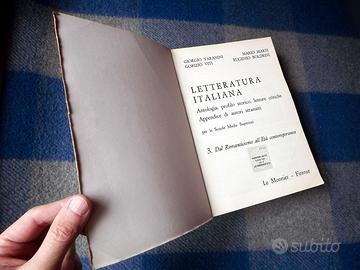 Letteratura Italiana 3 - Antopologia, profilo storico, lettere critiche, appendice di autori stranieri. (Varanini, Marti, Viti, Boldrini). Dal Romanticismo all'età contemporanea - Le Monnier, Firenze (Maggio 1979) Manuale scolastico di letteratura italiana per le scuole superiori, curato da noti studiosi e accademici italiani. È un'opera di stampo classico e filologico, molto diffusa nei licei italiani per decenni, apprezzata per il rigore dei curatori, molti dei quali erano illustri accademici. Versione originale di Le Monnier, Firenze, stampata in Maggio del 1979. Condizioni molto buone, salvo qualche segno del tempo sui bordi e qualche macchia sul colore della copertina (si veda in foto). Volume con 1276 pagine. ISBN: 8800400981. Chiedere info o altre foto se interessati, grazie.