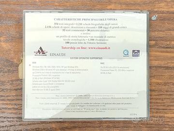 *** Letteratura Italiana Einaudi *** - Autori: Einaudi, Mondadori - Lingua: Italiana - Anno: 2003 - Opera completa: Si, con 10 CD-ROM - Biografia e Opere di artisti e scrittori dal 1200 fino alla fine del 1900 - Contenuti istruttivi video e audio in ogni CD-ROM - Funzionanti, testati con installazione su laptop con sistema operativo Windows 11 - Nella custodia originale (possibili segni del tempo), con locandina - Ottimo per appassionati e collezionisti di oggetti di altra epoca