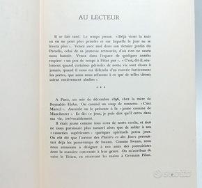 In 8° (13x19 cm), pp.(2) XII-132, Brossura editoriale originale morbida color marrone-verdastro, ritratti in bianco e nero di Proust e Marie Nordlinger.