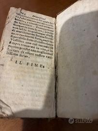 ⭐ Perché è interessante •Opera religiosa e devozionale del XVIII secolo •Adatta a collezionisti di libri antichi, storia della Chiesa, spiritualità •Originale, NON ristampa moderna Vendo raro libro antico del 1725, stampato a Milano, titolato: “Divotissimi Esercizi di Preparazione e di Ringraziamento da praticarsi avanti e dopo la S. Confessione e Comunione. Cavati da Manoscritti di S. Francesco di Sales, Vescovo e Principe di Ginevra. Tradotti dalla lingua francese.”