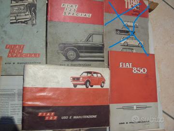 Dispongo di alcuni libretti Uso e Manutenzione di modelli Fiat, "SOLO QUELLI IN FOTO" 124-125-127--850-furgone 1100-,inoltre manuali di riparazione