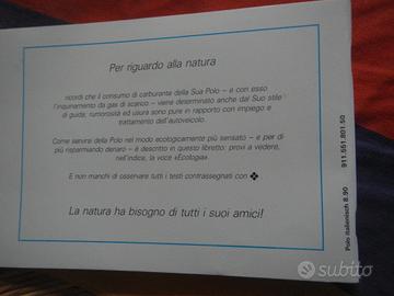 libretto uso e manutenzione della Polo del 1991 è in ottimo stato di conservazione, quasi nuovo