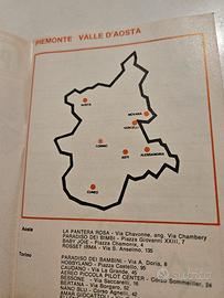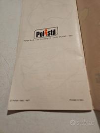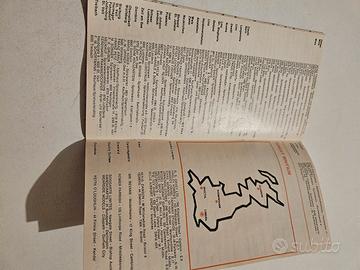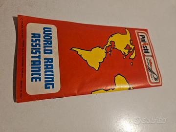 Libretto World Racing Assistance di Polistil. - Copertina rossa con mappa del mondo gialla. - Logo Polistil e Grand Prix sul fronte. - Testo World Racing Assistance in blu su sfondo bianco.