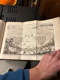 l’autore: De Folard , contiene il famoso trattato sulla colonna, trattato sull’attacco e la difesa degli antichi , opera in sei volumi in pelle marrone , dimensioni 26 × 21, in quarta, il quinto volume contiene a dei camminamenti di tarlo estinto verso la fine del volume che non intaccano quasi mai il testo, contiene anche la gora d’acqua sempre su questo,macchie diffuse . questi 6 volumi contengono 17 incisioni alcune anche ripiegate compreso antiporta figurato oltre a diversi frontespizi incisi.venduto visto e piaciuto , condizioni come in foto .opera che se fosse completa nelle incisioni valore sopra i 1000 euro, quindi opera venduta non completa