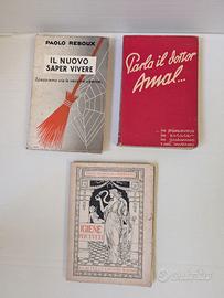 Vendo antichi libri, ben tenuti, con alcuni segni del tempo: IL NUOVO SAPER VIVERE – Spazziamo via le vecchie usanze - Paolo Reboux – Rizzoli & C. Milano – anno 1931 – euro 8 IGIENE PER TUTTI – Prof. Ferruccio Rizzati – S. Lattes & C. Editori – Torino – anno 1916 – euro 12 PARLA IL DOTTOR AMAL ..... in primavera in estate in autunno in inverno – edit. L. Olivini - Milano - anno 1939 – euro 15 LA GENTE PER BENE per la Marchesa COLOMBI – XXVI edizione con aggiunta di nuovi capitoli – Milano Casa Editrice BALDINI, CASTOLDI & C. - anno 1901 – euro 30. SIGNORILITA' piacevole trattato di economia domestica di galateo e di mondanità – Contessa Elena Morozzo della Rocca Muzzati – Giuseppe Carabba Editore Lanciano – anno 1932 – euro 25. PER TE, DONNA – volume II – la donna e la bellezza – Vanna Piccini – Edizioni Mani di Fata – Milano – anni 1930 – euro 8. PER TE, DONNA come si vive oggi – Seconda edizione – Vanna Piccini – Milano 1932 – Edizioni "MANI DI FATA" – euro 8. LE BRUTTE PAROLE Semantica dell'eufemismo – Nora Galli de' Paratesi – Arnoldo Mondadori Editore – 1964 – euro 10. LE VEGLIE DI NERI con prefazione di Ettore Allodoli ed illustrazione di Giovanni Costetti – Renato Fucini – Vallecchi Editore Firenze – anno 1924 – euro 15 BEL MONDO Don Diego – Diego Calcagno - Editoriale G.I.C. Roma – anno 1952 – euro 15. SETTIMANA BIRICHINA di V. Soldani – Biblioteca Bemporad per i ragazzi – R. Bemporad & F° Editori Firenze – anno 1921 – euro 12. IL ROSARIO di Florence L. Barclay – Romanzo – Biblioteca delle Giovani Italiane – Felice Le Monnier Editore – Firenze – anno 1926 – euro 20. LA SONATA A KREUTZER di Conte Leone Tolstoi – Nuova traduzione italiana – Gennaro Monte, Libraio Editore – anno 1906 – euro 10.