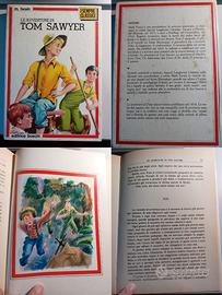 - Le avventure di Tom Sawyer (Mark Twain). Pagine in condizioni eccellenti, copertina rigida buona sul fronte e macchiata sul retro, dorso ancora integro e non sfaldato.
