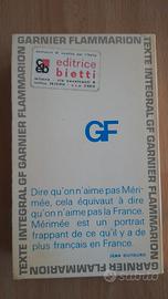 Due volumi della collana Garnier-Flammarion Parigi (GF), edizioni originali degli anni '60 in lingua francese, copertina flessibile con grafica iconica GF, formato tascabile, testi integrali: Honore' de Balzac - Le Pere Goriot edizione 1966, cronologia e prefazione di Pierre Citron. Prosper Merimee - Colomba edizione 1964, cronologia e prefazione di Pierre Salomon, presenta un bollino editoriale "Editrice Bietti" sul retro (distribuzione per l'Italia dell'epoca). I libri sono vissuti ma ben conservati, senza scritte, le pagine sono leggermente imbrunite.