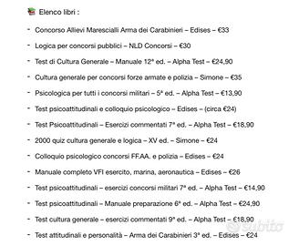 Vendo in blocco 14 manuali nuovi per la preparazione ai concorsi militari e nelle forze dell’ordine: esercito, VFI, carabinieri, marescialli, aeronautica, marina, polizia.