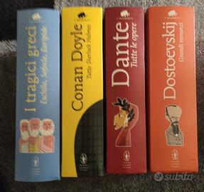 4 libri mai sfogliati ottime condizioni.Tutto Sherlock Holmes,le opere di Dostoevskij, tutto Dante e i Tragici Greci