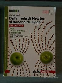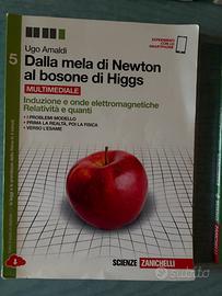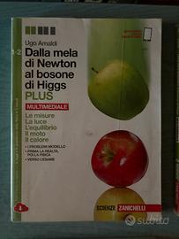 Libri di fisica delle scuole superiori, collezione “Dalla mela di Newton al bosone di Higgs” della Zanichelli, “La fisica di tutti i giorni” della Zanichelli e “Fisica su misura” della Tramontana.
