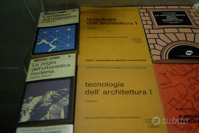 alcuni titoli : statica applicata alle costruzioni - manuale di edilizia scolastica - urbanistica citta' e territorio - tecnologia dell'architettura 1-2 - costruzioni in cemento armato - la manutenzione degli edifici residenziali - lezioni di restaurto dei monumenti ed altri