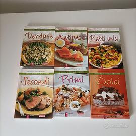 Vari libri di cucina al prezzo indicativo da Euro 5,00 a 3,00 l'uno. Marco Bianchi: -I magnifici 20 - I buoni alimenti che si prendono cura di noi -Le ricette dei magnifici 20 - i buoni piatti che si prendono cura di noi -Io mi muovo-10 minuti x30 giorni- esercizi e ricette per mantenersi in forma -Benedetta Parodi è pronto - salva la cena con oltre 250 nuove ricette, semplici e veloci -Benedetta Parodi mettiamoci a cucinare -Benedetta Parodi Le ricette salvacena - i miei piatti sfiziosi in 15 minuti -365 giorni in cucina - una buona ricetta al giorno -Il cucchiaio d'argento - Cucina veloce - 250 ricette coi minuti contati Editoriale Domus N. 6 LIBRI con 100 ricette facili e veloci - La cucina di famiglia cristiana: ANTIPASTI, PRIMI, SECONDI, PIATTI UNICI, VERDURE e DOLCI -Oggi cucino io -N.2 - da 1 a 4 Euro: le migliori ricette per magiar bene risparmiando-Mondadori -Oggi cucino io -N.4 - Il meglio della cucina italiana in 600 ricette Mondadori -Pesce - crostacei e frutti di mare-Giunti Demetra