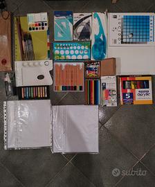 Vendo libri e materiali per la scuola, più precisamente per un Liceo Artistico. Oggetti che ho usato poco o che proprio non ho mai utilizzato. Ogni articolo ha un suo prezzo, contattare per saperlo. CONSEGNA SOLO DI PERSONA. Righello da 100cm non pieghevole Blocchi di fogli da schizzo Matite H, B, 2B,3B,4B,5B,6B,8B,10B Pennelli pelo di cinghiale misura 0,2,4,6,8,12,14,16 Acquerelli Windsor & Newton Divisori colorati per quaderni ad anelli Squadrette Goniometro Cerchiometro Curvilinee Fogli carta da lucido Tela da pittura 40x30 Colori acrilici Matite colorate acquerellabili Gessetti colorati Tubetti da tempera Tavola per pittura Fogli protocolli a righe e quadretti Fogli a buchi a righe e quadretti Pennarelli promarker Materiali per modellare la plastilina Spary fissante per carboncino