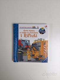 Libri educativi Ravensburger con finestrelle per aiutare a rispondere a tutte le domande e le curiosità dei bambini. Il Treno; L’Escavatore; I Dinosauri; Per la Strada; I Rifiuti.