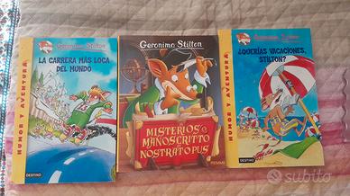 Vendo libri in spagnolo di Geronimo stilton. El gran reino de la fantasia 10 euro Viaje en el tiempo 7 euro Queridas vacaciones stilton 4 euro La carrera mas loca del mundo 4 euro Presi un blocco 20 euro tutti