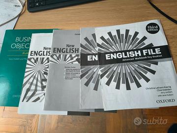 2 libri grammatica inglese “NEW ENGLISH FILE” livello intermediate “Student book e workbook” di Clive Oxeden e Christina Latham-Koenig + Business objectives (workbook) + 2 inserti “New English file - intermediate workbook key” e “Entry checker for intermediate” + 2 inserti “English file advanced workbook Key Booklet” e “Entry checker for advanced ” third edition dw. Ottime condizioni non compilate. Preferibile vendita e consegna diretta con pagamento in contanti per Milano e comuni del circondario. L'eventuale costo di spedizione è a carico dell'acquirente (preferibile eventuale spedizione e vendita direttamente con procedura di Subito).