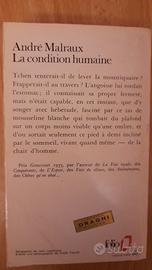 Cinque classici della letteratura francese in lingua originale (francese) editi dalla prestigiosa collana Folio Gallimard stampati in Francia. Edizioni vintage anni 70 caratterizzate dalle iconiche copertine illustrate dell'epoca: La condition humaine di André Malraux edizione 1979 La symphonie pastorale di André Gilde edizione 1978 L'annonce faite a Marie di Paul Claudel edizione 1978 L'immoraliste di André Gilde edizione 1978 Huis clos suivi de Les mouches di Jean-Paul Sartre edizione 1979. In buone condizioni, pagine naturalmente brunite dal tempo, copertine ben conservate solo quello di Malraux ha una piega e quello di Sartre retro prima copertina con un piccolo segno di scotch staccato, nessuna sottolineatura o scritta, due volumi riportano il bollino della "Libreria Draghi Padova" sul retro, un dettaglio vintage che ne testimonia la provenienza storica.