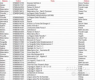Codici dei libri in vendita: