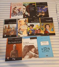 Vendo libri di narrativa in lingua originale (inglese, francese e spagnolo) di livelli misti, TUTTI compresi di CD per audiolibro e di esercizi alla fine di ogni capitolo.