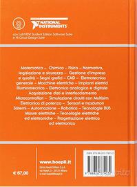 (Ogni sezione è preceduta dall’indice dettagliato e termina con la bibliografia). Matematica – Chimica – Fisica - Normativa, legislazione e sicurezza - Gestione d’impresa e qualità - Segni grafici – CAD - Elettrotecnica generale - Macchine elettriche - Impianti elettrici – Illuminotecnica - Elettronica analogica e digitale - Acquisizione dati e interfacciamento – Microcontrollori - Simulazione circuiti con Multisim - Elettronica di potenza - Sensori e Trasduttori – Sistemi – Automazione – Robotica - Tecnologie BUS - Misure elettriche - Tecnologie elettriche ed elettroniche - Progettazione elettrica ed elettronica