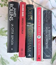 5 libri : 1 la città sepolta di james Rollins 2 attacco a Teheran di David Ignatius 3 Broker di John Grisham 4 IL VELOCISTA di Christopher Reich 5 Il Sangue dello Scorpione di Massimo Marcotullio