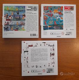 Titoli proposti come libri-gioco, da leggere, guardare e raccontare, componendo le schede fino a formare un’unica grande immagine. Testi liberamente tratti dalle storie originali, illustratori vari, a colori, cartoncino plastificato, formato 17,5 x 16,5 cm, con 20 o 21 schede contenute in un astuccio.