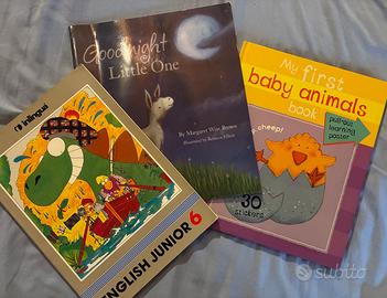 3 libri con storie, stickers, un poster per memorizzare parole nuove e letture semplici (uno dei 3 libri e’ da considerarsi un livello A1 e copre anche la grammatica). I libri sono in condizioni ottime e senza scritte.
